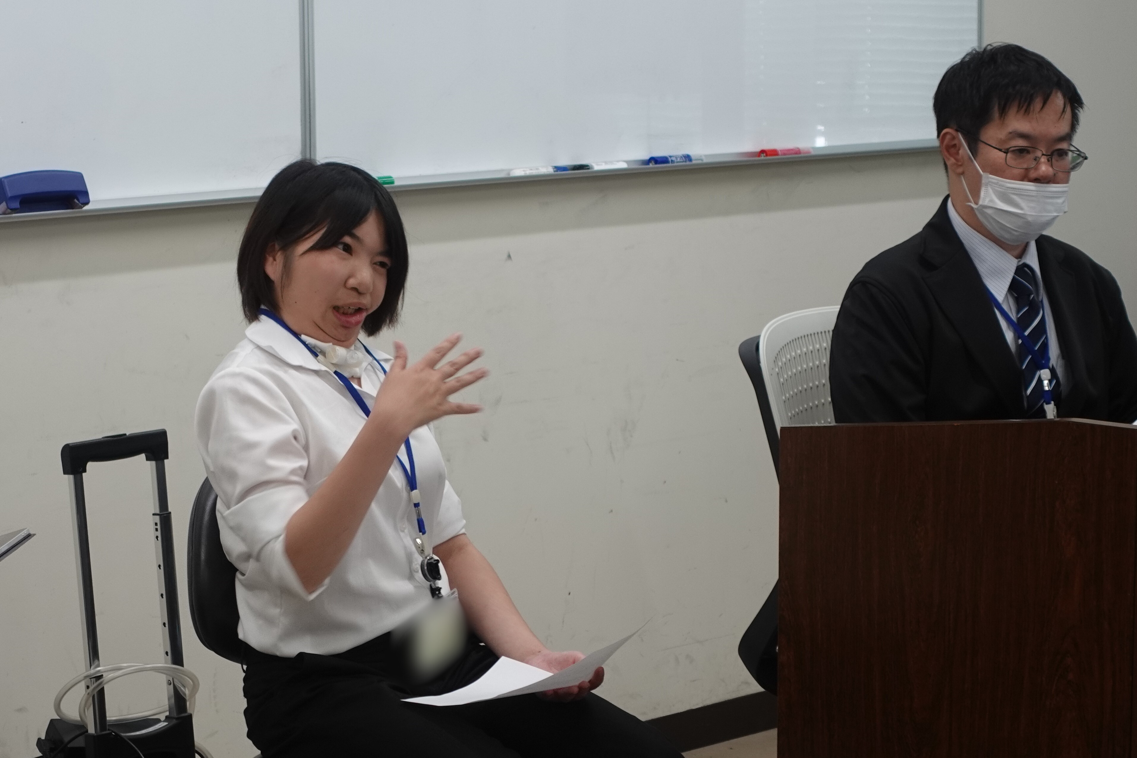 次に、指導員がインタビューする形で現役の訓練生から訓練についての話を行いました。