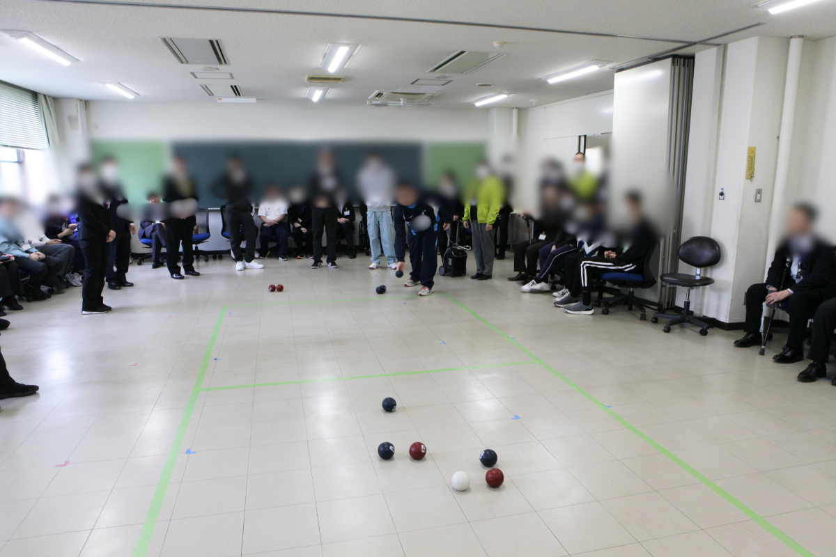 ボッチャとは、チームごとにそれぞれ赤・青のボールを6球投げ、