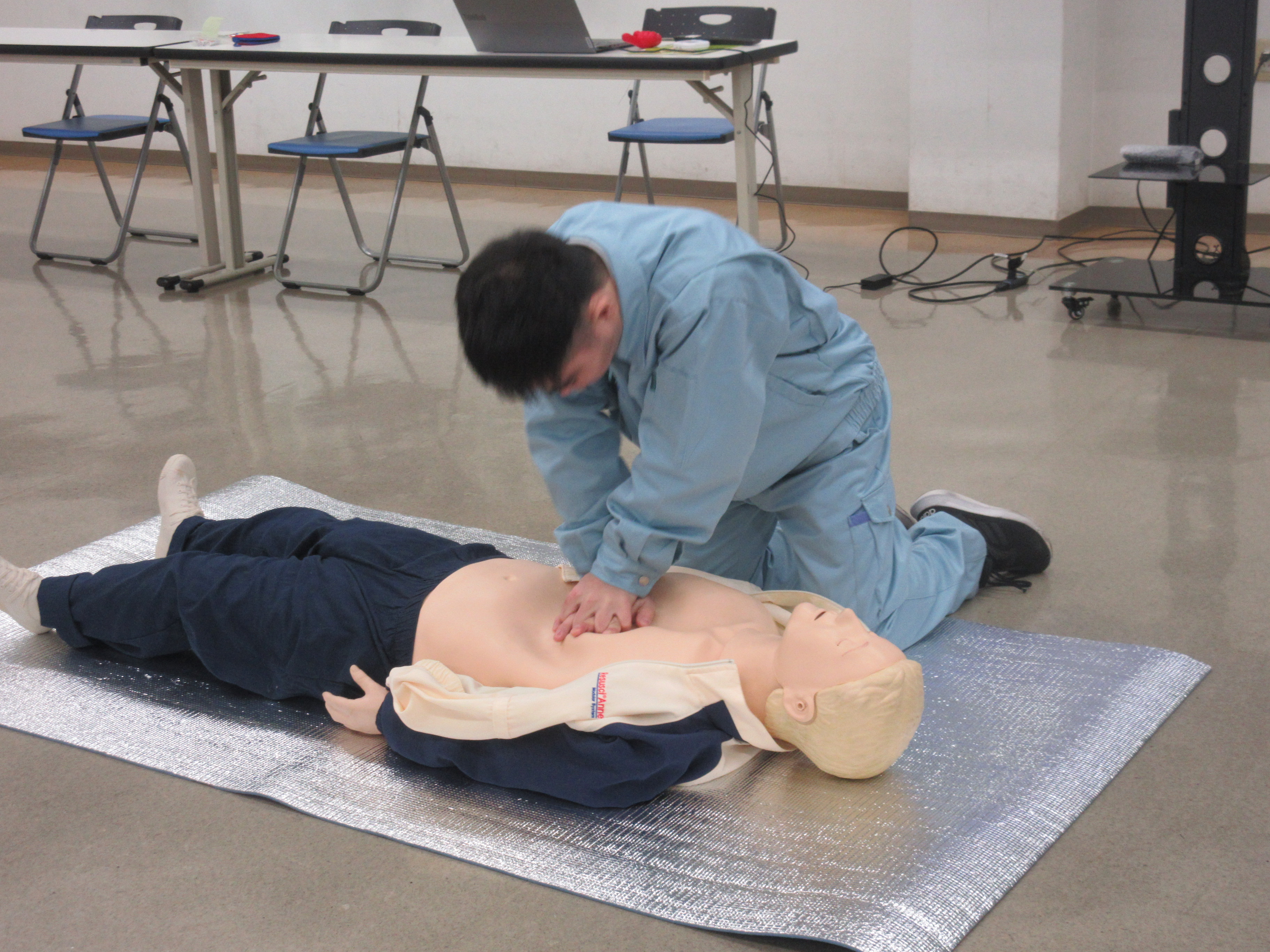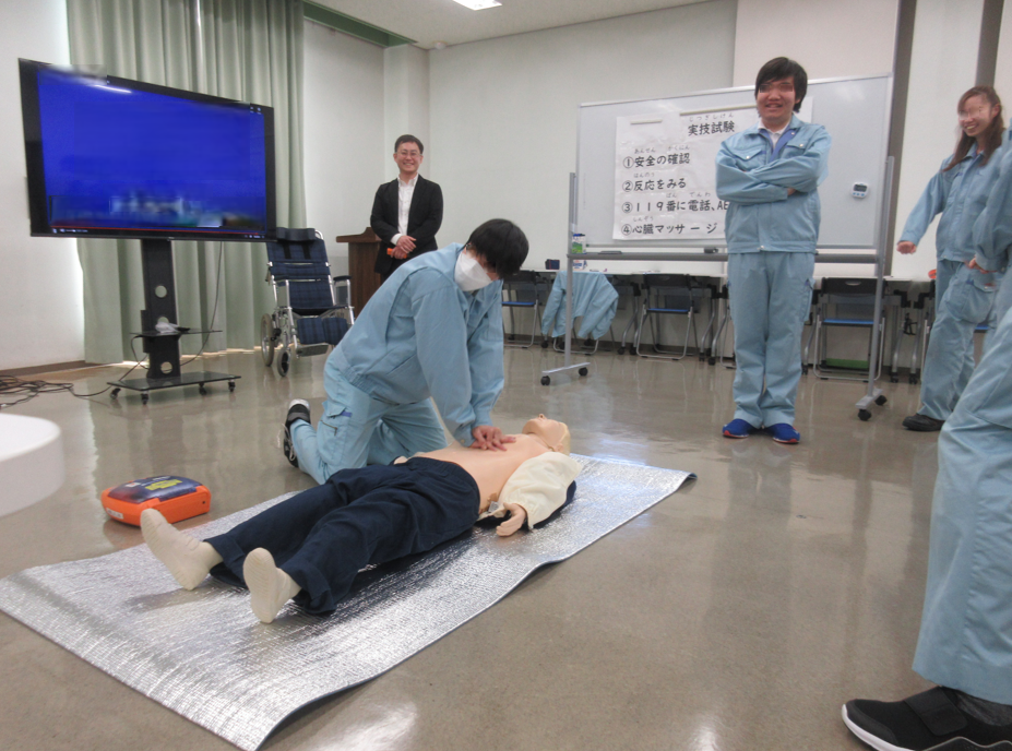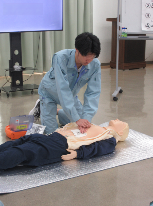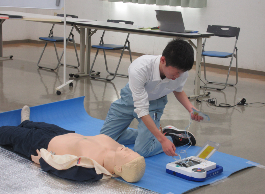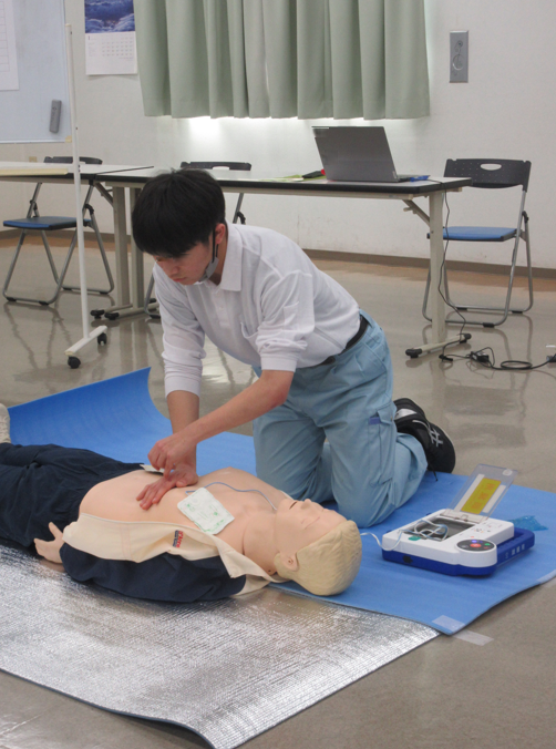 講習では、心肺蘇生法やAEDの使い方について、実際に体を動かしながら学びました。