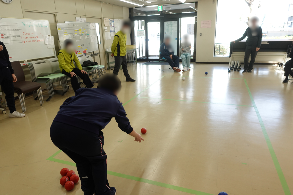 ボッチャとは、チームごとにそれぞれ赤・青のボールを6球投げ、